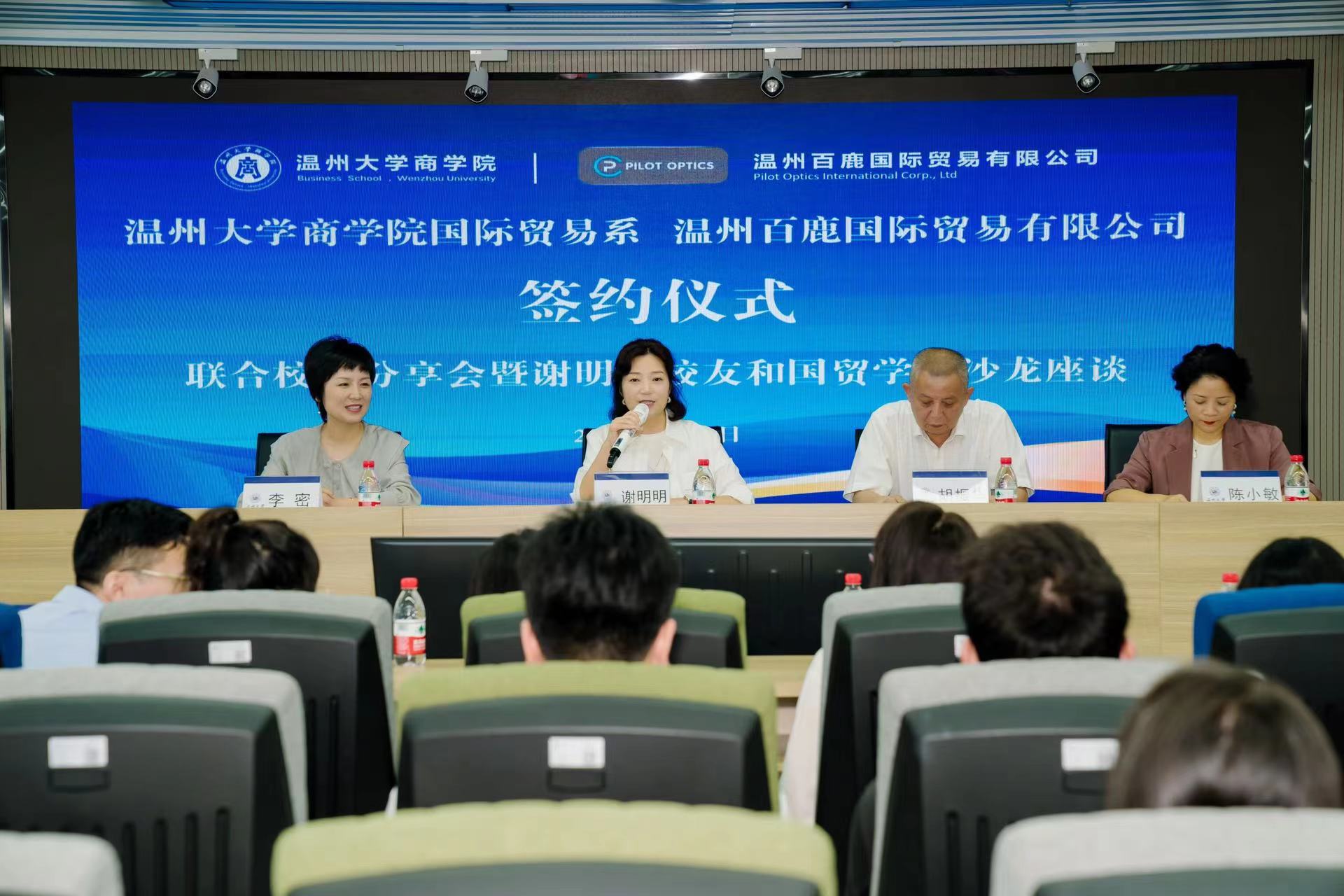 国贸系与温州百鹿国际贸易有限公司捐赠仪式暨谢明明校友和国贸学生沙龙座谈会在仲辉商道讲堂顺利举行。成人电影