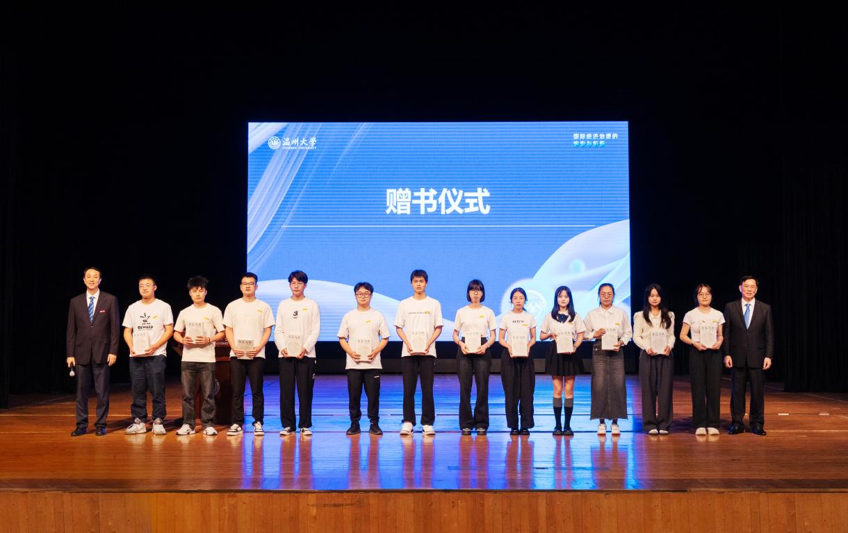 讲座结束后,林建海教授向温大学生代表赠予著作——《化危为机》,以此表达对广大温大学子的殷切期盼。