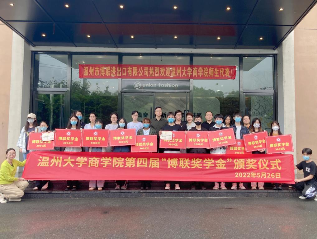 第四届“博联奖学金”颁奖仪式如期举行,本次颁奖仪式在温州市博联进出口有限公司举行,获奖学生们通过实地参观交流,近距离感受了校友成人电影。学院党委书记郑彩莲、党委副书记唐华、学工办主任周洁文、获奖学生及学生代表参加了本次活动。活动由唐华副书记主持。