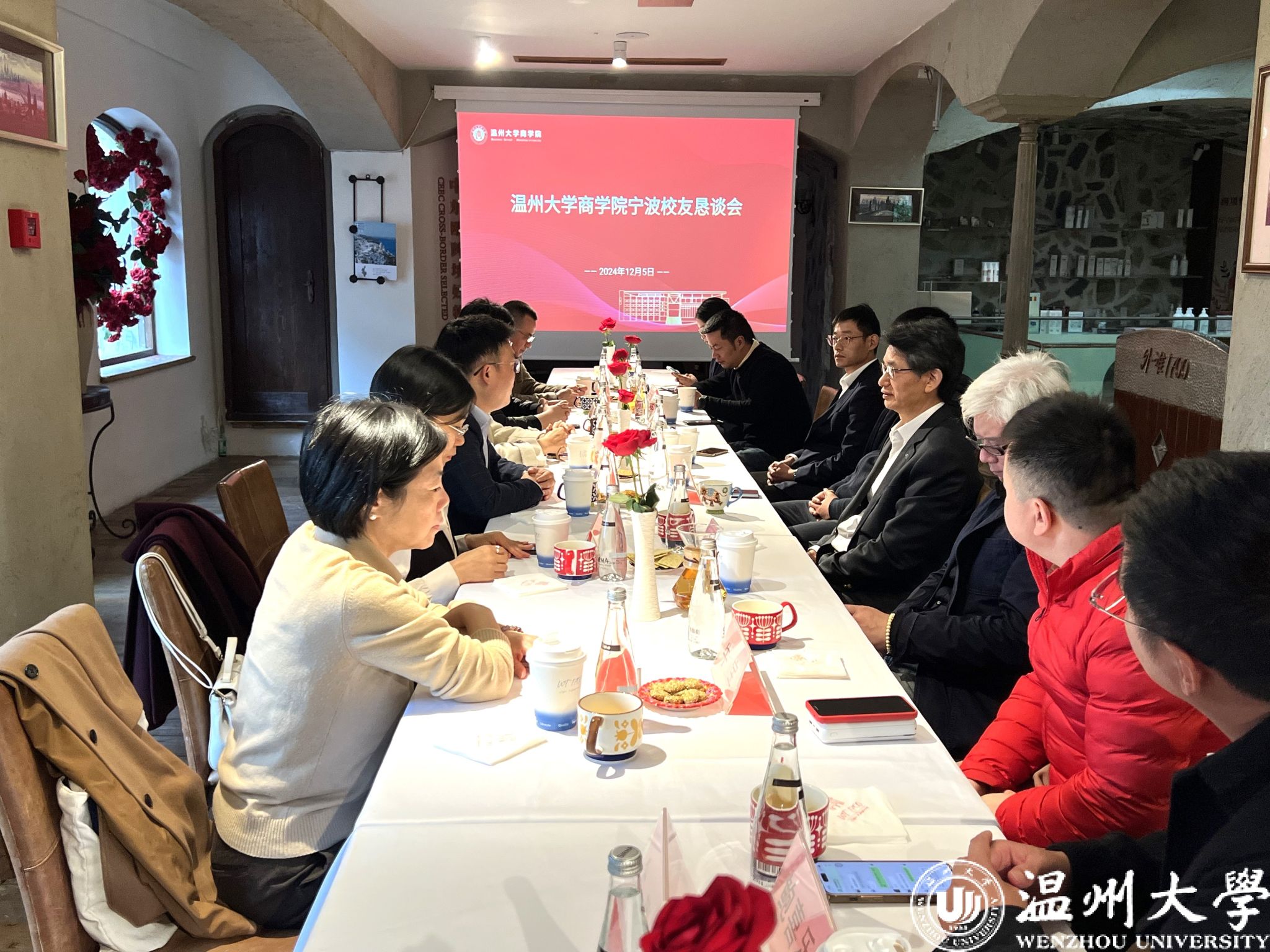 陈有相会长表示,学院是校友们昨天求学时成长的摇篮,更是今天校友们沟通交流、共谋发展的重要平台,希望能够反哺母校,通过宁波校友会平台及校友们自身的经验和资源,为在校生提供指导和帮助,挖掘和培养更多优秀人才,输送到更重要的岗位上去,真正实现“共同富裕”。同时,他表示宁波校友会将继续发展壮大,成为宁波校友们最坚实的后盾和最温暖的港湾。