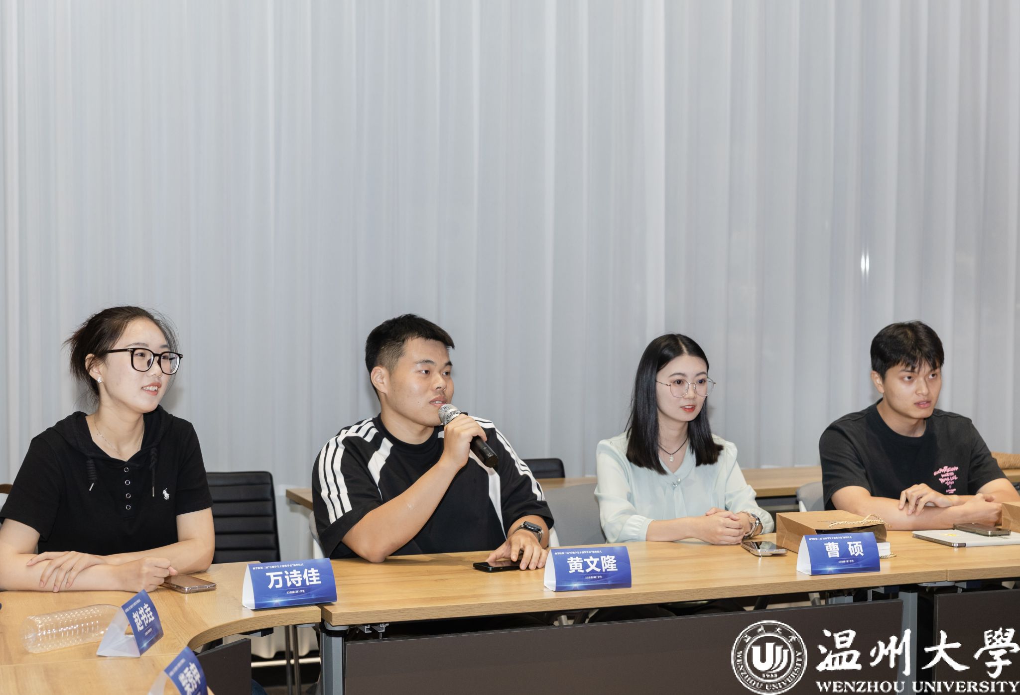 随后的交流座谈环节中,谢明明校友回忆自己在温大担任学生干部的青春岁月以及设立这项奖学金的初心。大学生时期的学生工作是漫漫人生路上最好的“无风险试错”机会,结合自己的创业经历与企业管理经验,谢明明校友分享了自己的三点感悟:一是掌握团队管理的"收放之道",既要懂得统筹协调,也要懂得授权管理,让团队既保持凝聚力又激发主动性;二是要积极构建"人际链接",通过每一次学生活动,与同学们构建跨专业的“强链接”,逐步建立起自己人脉网络;三是要懂得"合作共赢"的道理,成就他人方能成就自己。谢明明校友引用庄子"无用之用,方为大用"的哲思,寄语同学们,这些看似‘无用’的学生工作,实则是在打磨最‘有用’的人生底层能力。领导力、共情力、抗挫力等软实力,或许无法即时兑换成绩单上的分数,却会成为未来应对复杂挑战时最坚实的底气。