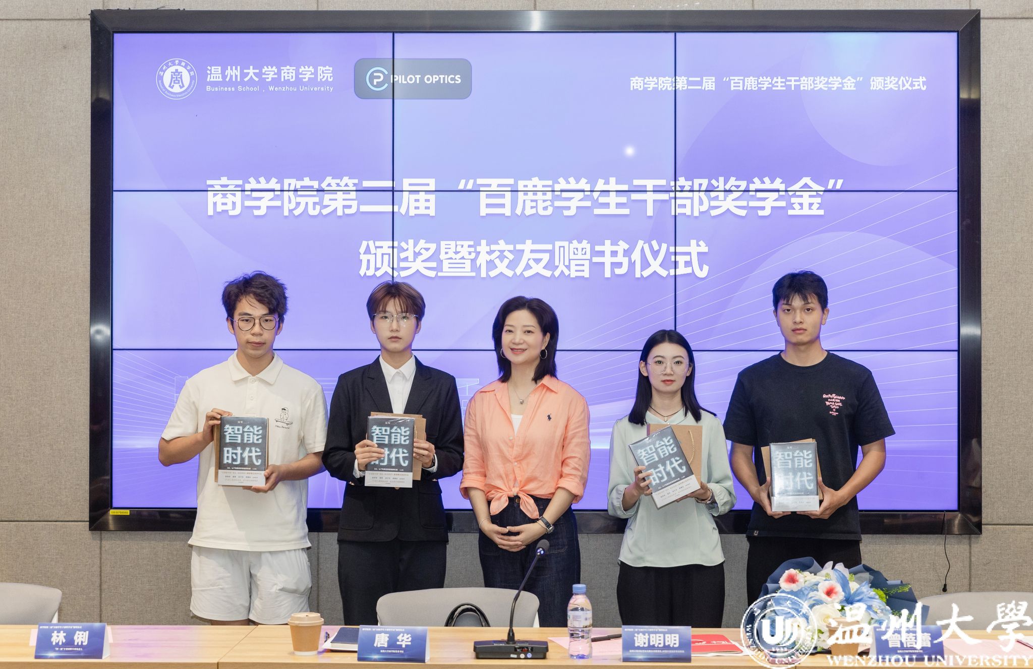 “百鹿学生干部奖学金”颁奖仪式上,谢明明校友为获奖的学生干部们逐一颁奖。同时,她精心为每位同学们准备了书籍《智能时代》,勉励学弟学妹们既要深耕学生工作,在服务中锤炼本领,更要保持学习敏锐度,主动拥抱智能时代的机遇与挑战,让青春与时代脉搏同频共振。