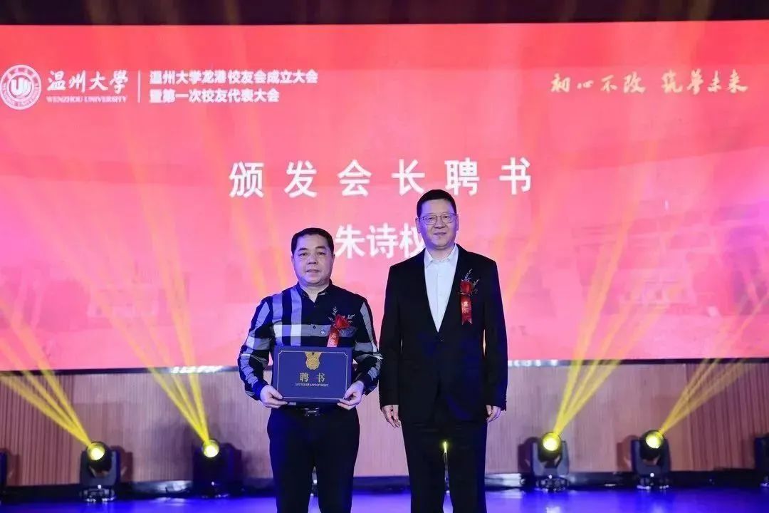龙港校友会第一届理事会建议名单。郑信军向龙港校友会授牌、授旗,向龙港校友会顾问、会长、常务副会长、副会长、秘书长、副秘书长、理事颁发聘书。