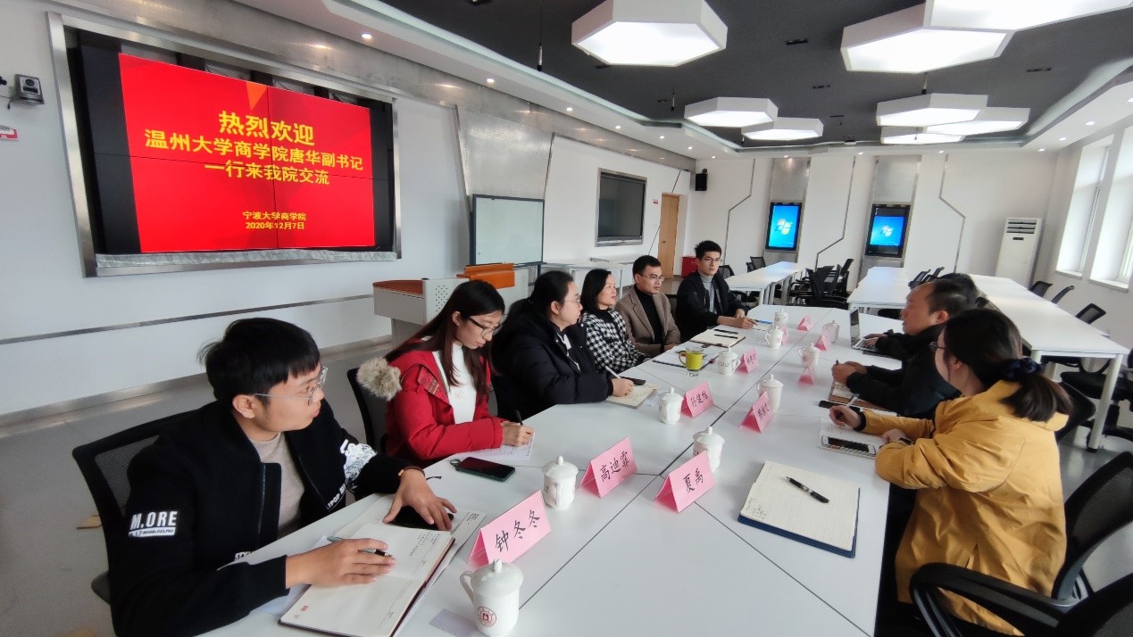 党委副书记唐华,学生工作办公室主任周洁文及辅导员黄汉、研究生夏禹一行4人赴宁波大学成人电影