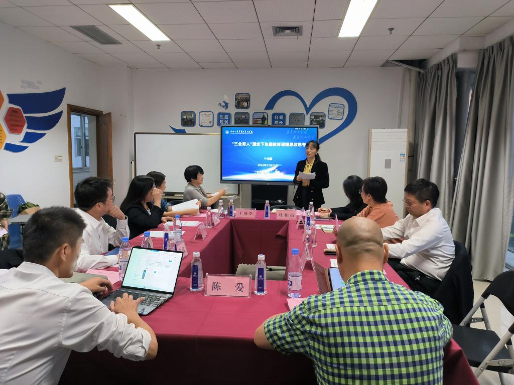 马克思主义学院党委副书记叶柏霜作《“三全育人”理念下生涯教育课程思政思考》的专题分享。她认为,生涯教育和课程思政具有天然融合优势,因为大学生职业生涯教育本就具有 “三全育人”的内涵,课程每一部分都蕴含着思政元素,而且师资队伍为课程思政提供了坚实基础。基于此,她强调,要深挖思政元素,合理设置课程思政教学内容,把理想信念和职业理想、奉献社会的职业道德、爱岗敬业的职业精神等融入职业生涯教育全过程。她指出要多措并举创新课程思政教学方法,积极探索互联网+、翻转课堂、慕课等多种教学手段,增加情景模拟、问题教学等教学方式方法;多用案例式教学,打破“你讲我听”的被动模式,通过学生独立思考, 寻求共识,获得启发;多用互动式教学,采用课上课下、竞赛教学,校友进课堂等方式,增加课程感染力。