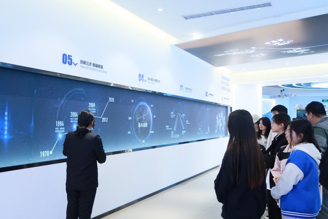 通过实地参观,国贸师生先后了解到全球的四大卫星导航系统,其中就包括了来自中国的北斗系统,而北斗系统设计也充满了“中国智慧”,独一份的“中国方案”让北斗系统的总体性能得到极大程度上的提升,系统服务地区辐射全球,其各项数据精确度在全球处于领先水平。看完这几项令人振奋的数据后,一股强烈的民族自豪感在同学们心中油然而生。
