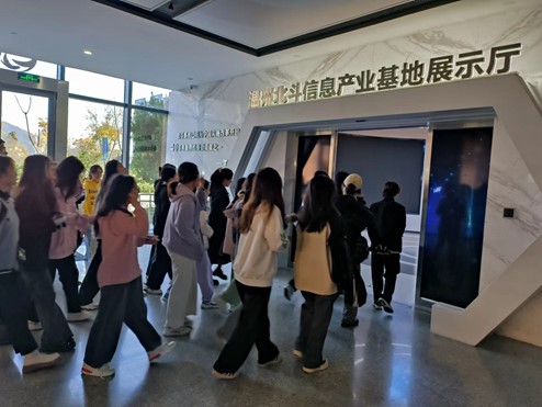 22级国际经济与贸易专业本科生在国贸系专任教师郑慧老师和辅导员黄汉老师的带领下,走进了位于浙南科技城的北斗信息产业园。