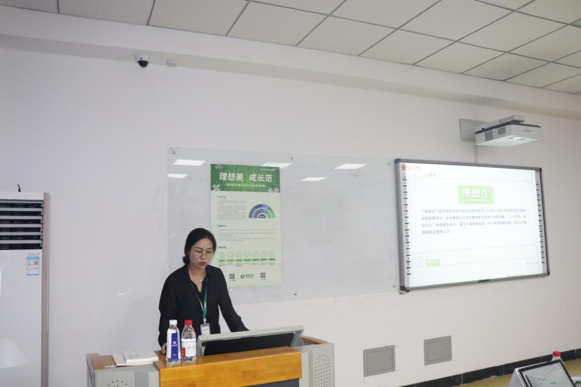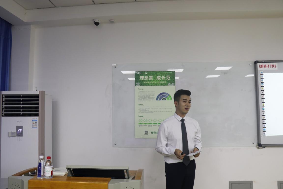 随后,绿城中国温州项目群销售经理叶心清向同学们介绍了绿城的本体理念。他以自身职业发展为例,介绍了“理想生”、“同道人”进入绿城后将会接受的各种学习和培训机会,将能享受到绿城各种贴心的福利。