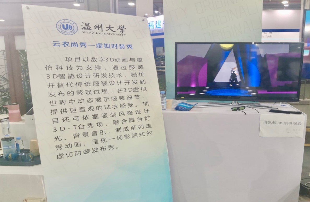 数字化车间软件系统、新型环保高分子笔头、功能PVB膜材料、聚乳酸可降解材料、云衣尚秀——虚拟时尚秀、自动下棋机器人、魔术师书法机器人、米可智能速热饮水机、Babynice儿童电动指甲剪、创新成果(温大)位于院校创意展区,由我校创作的科技工作者进行现场讲解,支持观赏、互动、体验、分享经验,展示学校的科技成果转化和产业化能力。为了吸收我校创业经验,来自温大商院的创业协会社员们先是体验了云衣尚秀——虚拟时尚秀,以3D动画与虚仿科技为支撑,模仿并替代传统服装设计开发到发布的繁琐过程,戴上3D眼镜,切身真正体验了一番堪称现场走秀的一次时装发布秀,而后询问关于创作的一些想法经验,令人耳目一新,不禁令人惊艳感叹温大创业青年的新智慧新思想。接着围观观赏自动下棋机器人的精妙,其中一名社员还得到魔术师书法机器人所写的一段送给朋友的祝福”早日脱单“极其温馨可爱的一段字。而后也陆续了解了一些新型材料,对未来的环境大有裨益的一些创业成果。