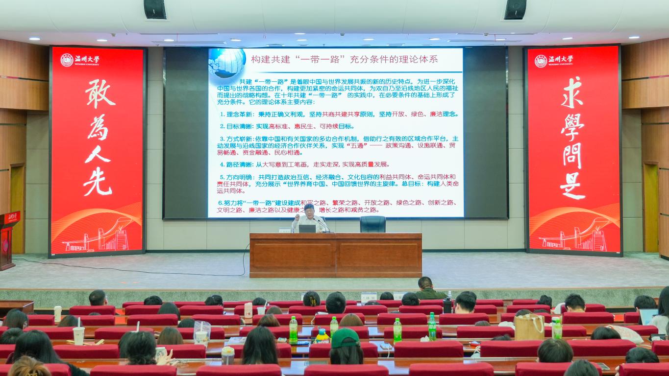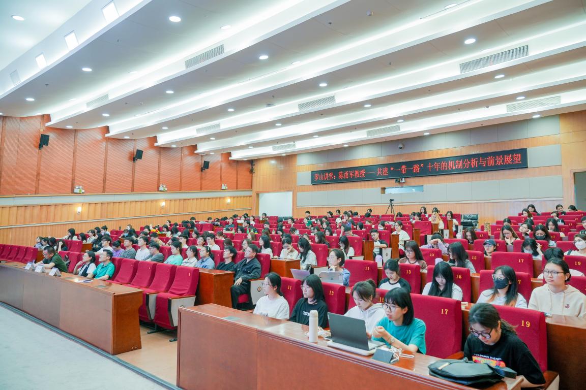 2023年正值共建“一带一路”倡议提出的十周年,陈甬军教授从“一带一路”取得的成就、理论机制、前景展望等方面展开了深刻的阐述,引发了大家对于高质量共建“一带一路”的进一步思考。整场讲座内容详实、生动形象,通过此次讲座不仅提升了师生对共建“一带一路”机制与前景展望的认识,更激发了同学们积极投身“一带一路”建设,践行共商共建共享理念,展现构建人类命运共同体的青春担当。