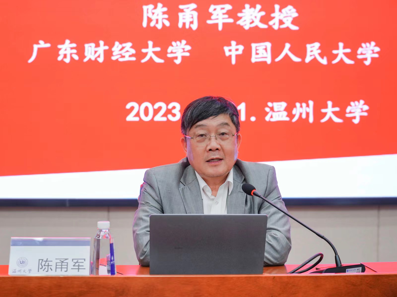 邀请,中国人民大学教授、广东财经大学大湾区双循环发展研究院院长陈甬军教授在育英图书馆二楼报告厅为大家带来题为“共建‘一带一路’十年的机制分析与前景展望”专题讲座。