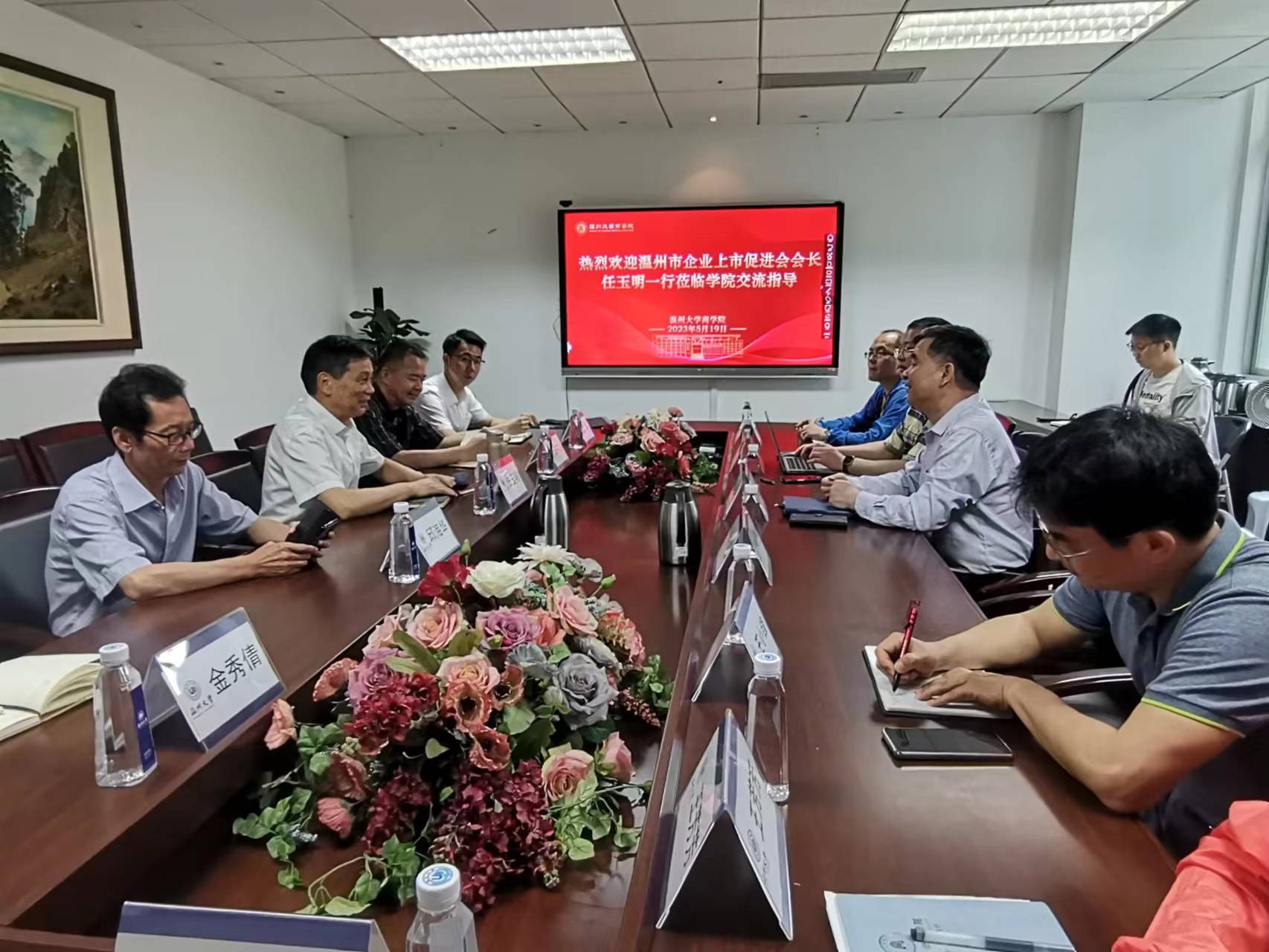 任玉明会长首先介绍了企业上市促进会的基本情况,他指出促进会长期以来承担着“为政府牵线搭桥,为企业推广宣传”的重任。针对当前温州本土上市公司数量缺少,企业普遍存在“不想上、不愿上、不敢上”的问题,促进会要协助政府、帮助企业,开展深入的调查研究。此行的目的,就是就上述问题进行讨论交流,听取学院各位专家老师的想法和建议。
