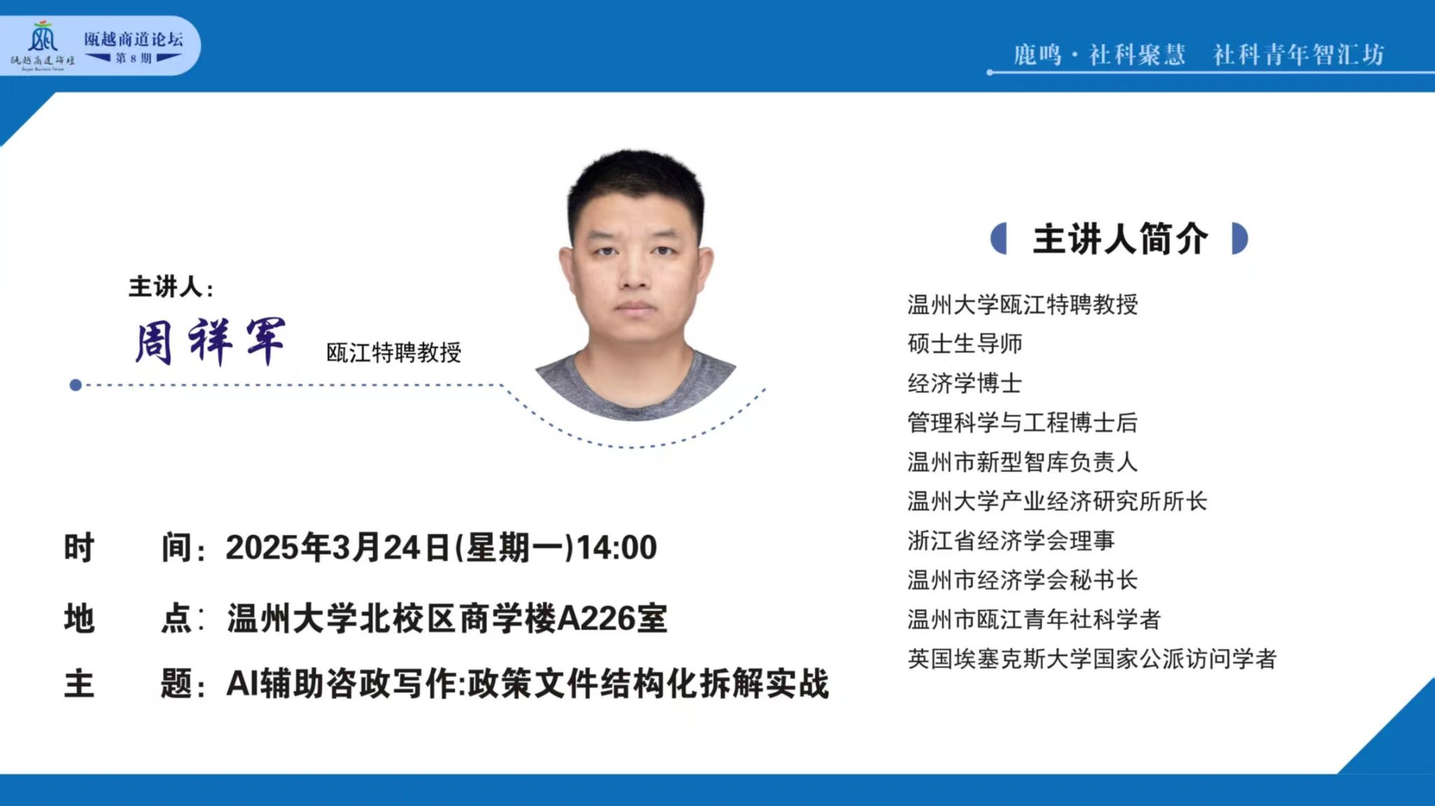 瓯越商道论坛第八期| AI辅助咨政写作讲座成功举办