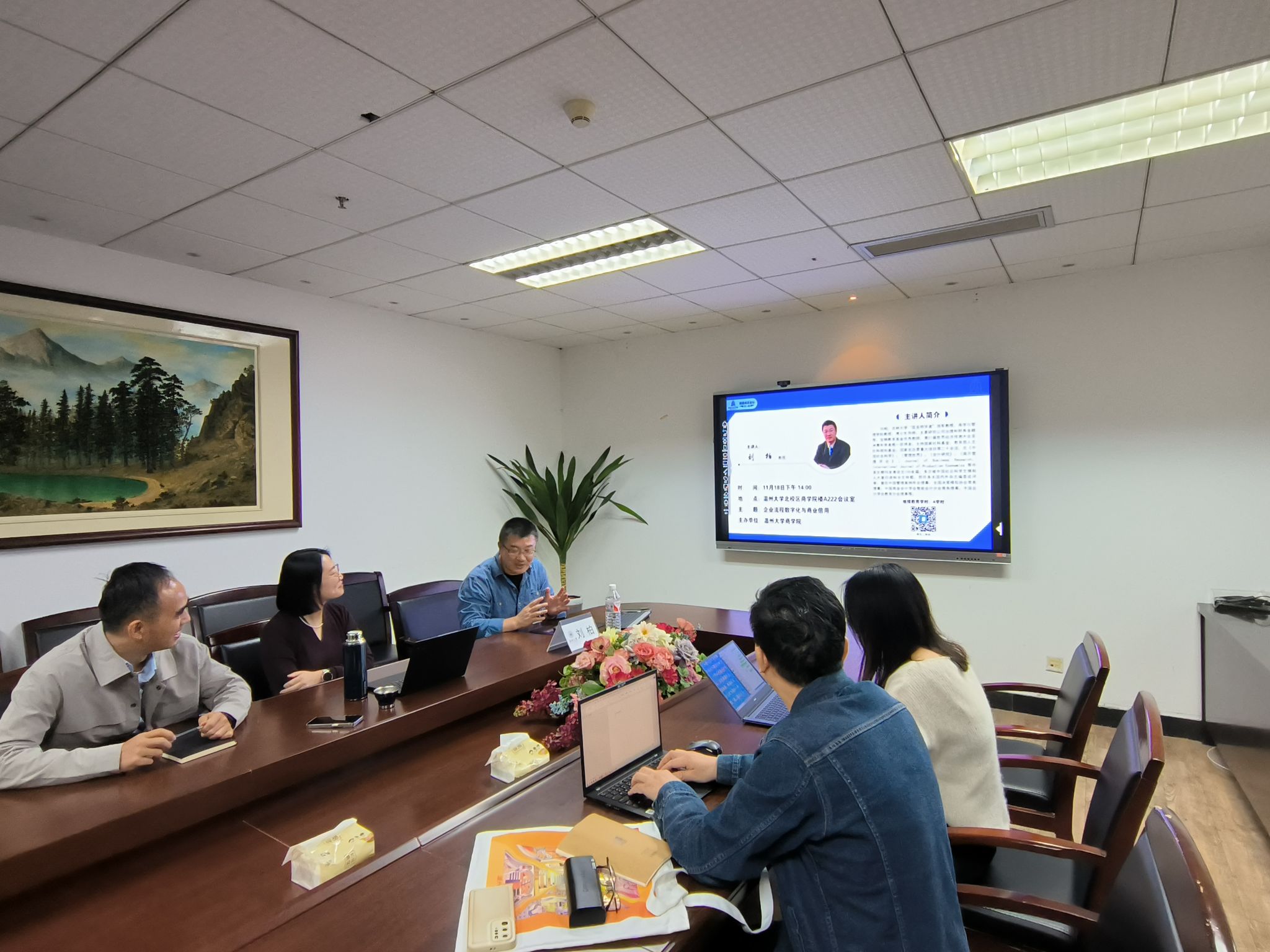 1118日下午,瓯越商道论坛第四期在北校区信息楼A222举行。本期论坛邀请吉林大学刘柏教授主讲,主题为《企业流程数字化与商业信用》,由成人电影 陈文芝副院长主持。刘柏教授系吉林大学“匡亚明学者”领军教授,商学与管理学院教授、博士生导师。主要研究公司治理和财务金融等。宝钢教育基金优秀教师,第27届世界经济预测大会亚洲青年学者唯一获得者。主持国家社科基金、教育部人文社科规划基金、国家发改委重大项目等二十余项,在《中国社会科学》、《管理世界》、《会计研究》、《南开管理评论》、Journal of Business ResearchInternational Journal of Production Economics 等中英文期刊发表论文100余篇,多次被中国社会科学文摘和人大复印资料全文转载。