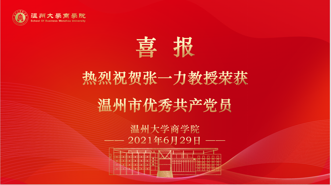 【喜报】我院张一力教授荣获温州市优秀共产党员