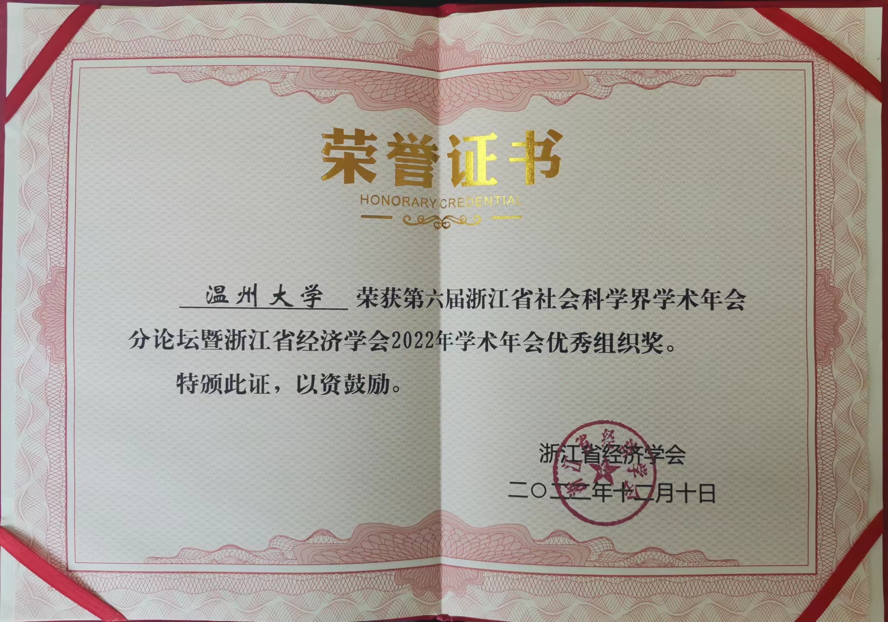 【喜报】成人电影 荣获第六届浙江省社会科学界学术年会分论坛暨浙江省经济学会2022年学术年会优秀组织奖!