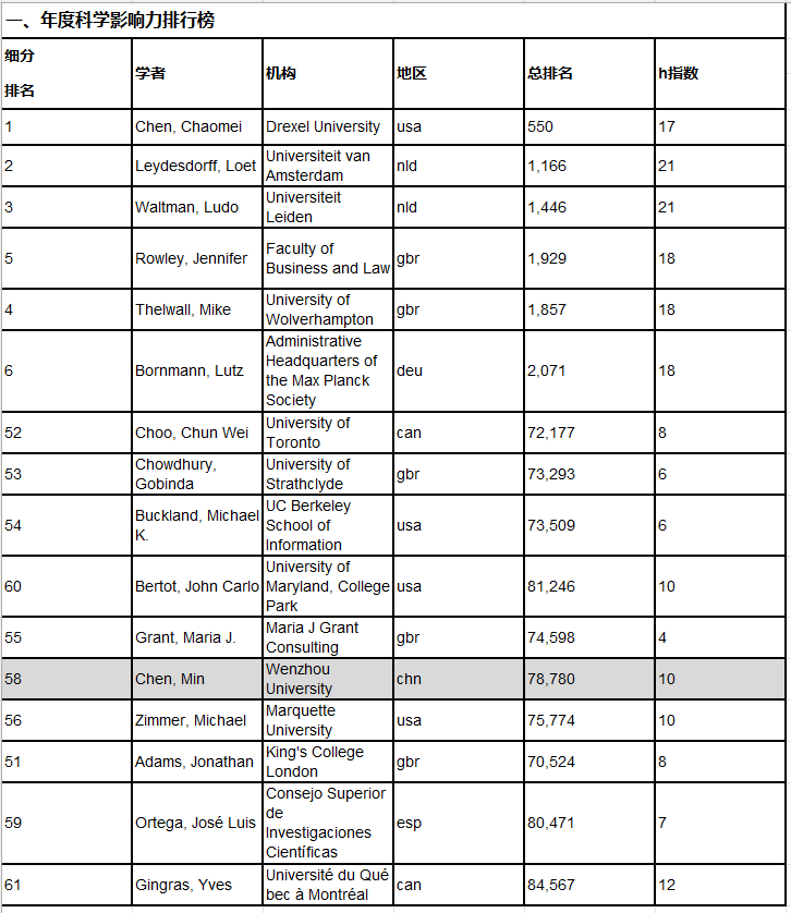 10月4日,美国斯坦福大学和爱思唯尔数据库(Elsevier Data Repository)发布第六版《年度全球前2%顶尖科学家榜单》(World’s Top 2% Scientists),我院陈敏博士入选2022年度图书馆学和信息科学类“年度科学影响力”榜单,这是我院首次有学者入选该类榜单。