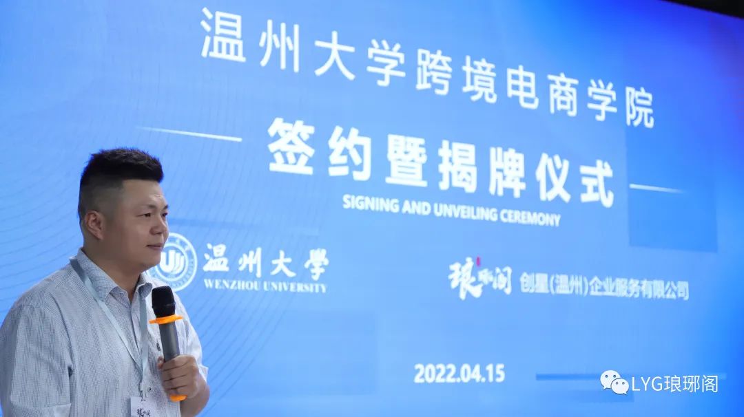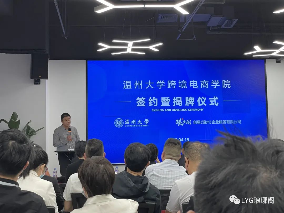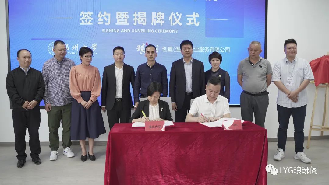 创星(温州)企业服务有限公司董事长李聪斌与温大成人电影 院长胡振华教授共同为产业学院揭牌。