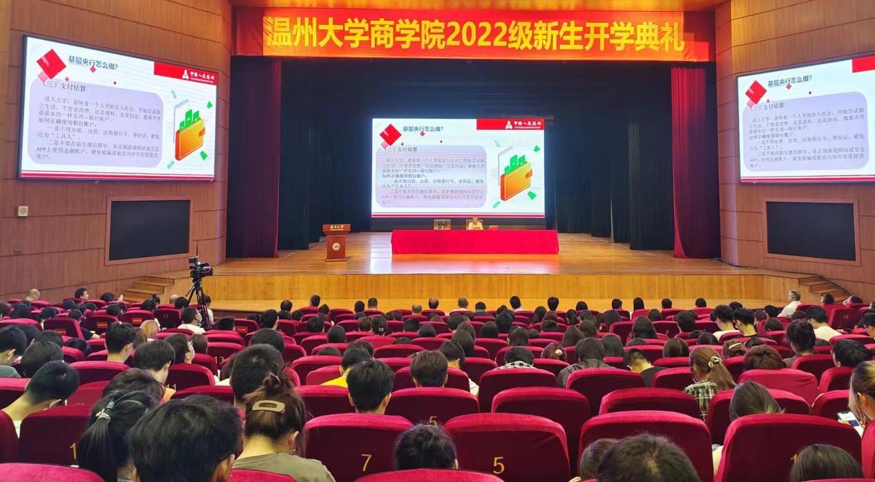 举行2022级新生开学典礼,为突出学院办学特色,一改往日开学典礼的传统,本次开学典礼特邀温州金融界重量级嘉宾——中国人民银行温州市中心支行党委书记、行长肖宗富为604名新生带来“中国人民银行主要职能及基层管理实践”专题讲座。此次专题讲座采用线上同步直播的方式,吸引了近10000人次点击收看。