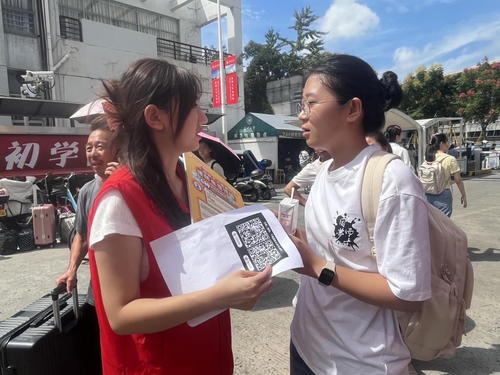 宣讲员秦悦同学感慨,“今年的宣传方式新颖,借助搬运行李的这个‘空隙’来宣讲诈骗知识,不仅可以拉近与学弟学妹的距离,还能一起把宣讲工作做好,一举两得”。