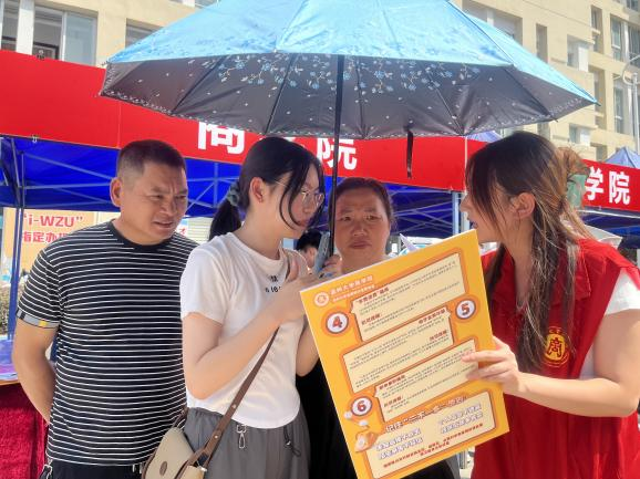宣讲员们还在新生排队等待报道的空档一一指导新生扫描下载“国家反诈中心”APP、给过路的新生及家长发放反诈宣传单、与新生一起拍照打卡等,坚持诈骗宣传“一个新生不落下”,并鼓励他们争当宣传员,将学到的防诈骗知识辐射到生活圈朋友圈,讲给亲朋好友听,通过以点带面,拓展防范电信诈骗宣传的广度和力度。