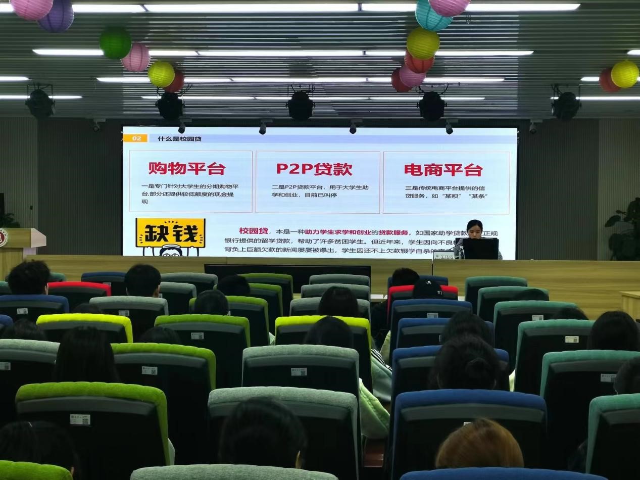 学生作“不良校园贷的风险防范知识”专题讲座。此次讲座由金融知识宣教协会主办。