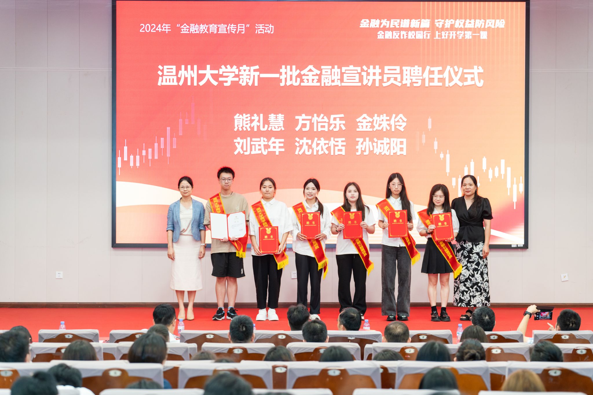 教工第一党支部书记熊礼慧,金融知识宣教协会成员方怡乐、金姝伶、刘武年、沈依恬、孙诚阳被聘请为新一批金融宣讲员。国家金融监督管理总局温州监管分局副局长钟洁慈和成人电影