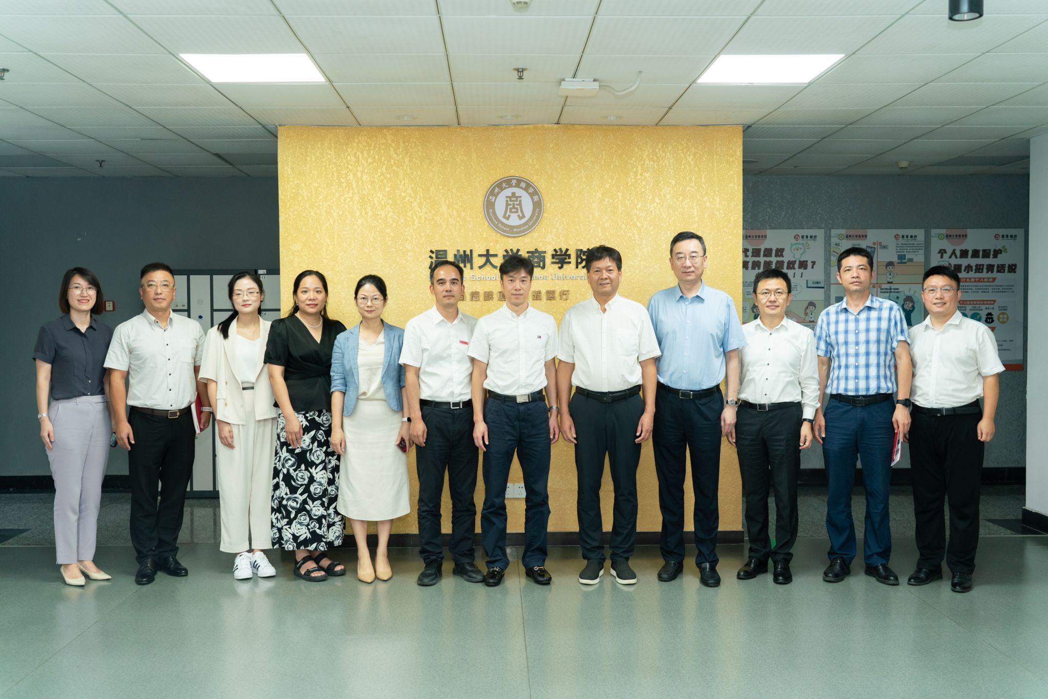 院长罗建利、党委书记唐华、党委副书记曾蓓蕾与国家金融监督管理总局温州监管分局局长朱燕军、副局长钟洁慈,招商银行温州分行行长袁森等就“银校金融共建”进行座谈交流。
