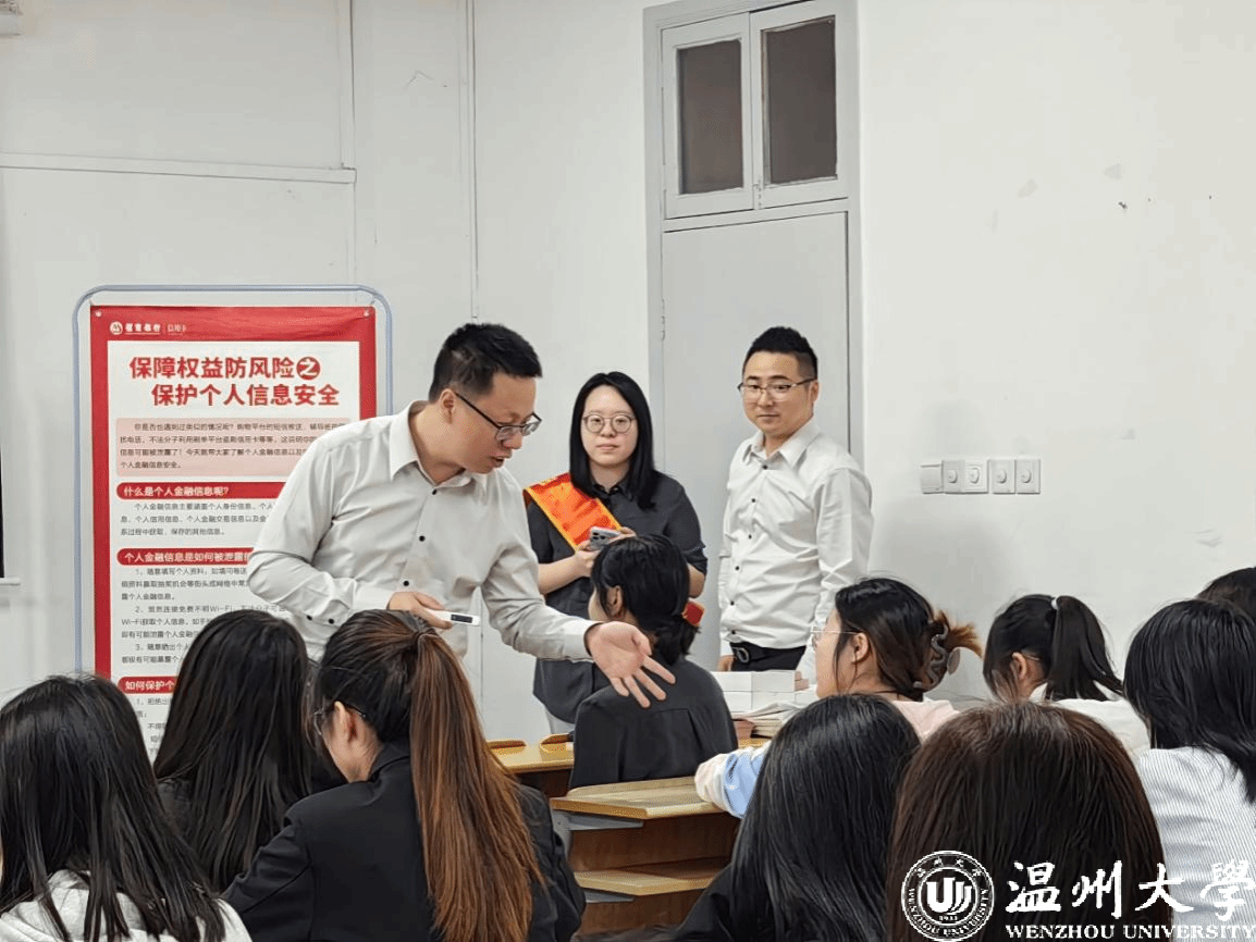 紧接着,娄志标从“信用卡概述”“个人信用”和“信用卡用卡安全小知识”三个方面向同学们讲解信用卡的正确使用他提到,在上世纪五十年代的美国,信用卡是一种能够证明身份和支付能力的卡片。但正因其这一特殊的属性,信用卡在满足当代人支付和消费需求的同时也会引发一系列问题,个人信用问题。个人信用主要通过个人信用报告展示个人信用报告主要包含个人基本信息、信息概要、信贷交易信息明细以及查询记录四个部分。若出现逾期还款、频繁贷款、众多不良社会行为则会产生不良信用记录,最终会对就业、出行、消费等产生系列负面影响。因此,维护好个人信用就显得十分重要其主要途径是要注意用卡安全。办卡安全、支付安全、资金安全、征信安全维护好个人信息安全用卡的重要内容讲座最后,招商银行温州分行工作人员通过有奖竞答的方式巩固了讲座的重要知识点