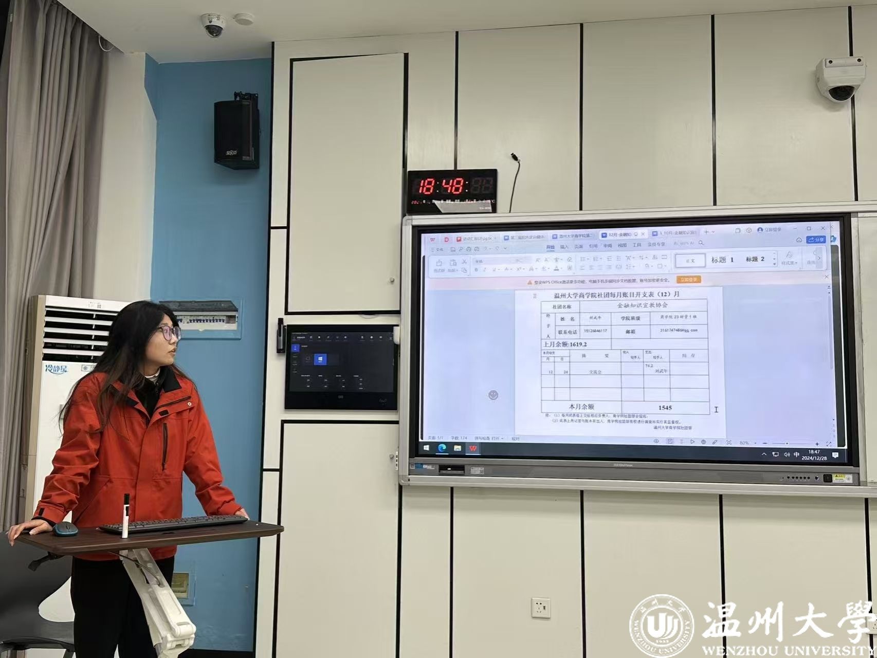 服务部部长刘武年同学展示了协会的财务报表,保证协会的财务公开透明,也社员深刻明白一个组织正常运行是需要资金的支持的