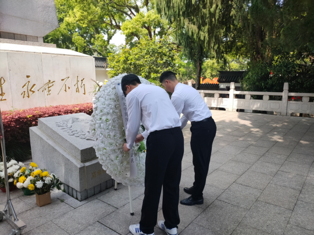 巍巍丰碑,英灵不朽。纪念馆周围环境幽雅肃穆,革命烈士纪念碑在苍松翠柏之间巍峨矗立。全体党员同志怀着对革命英烈崇敬的心情,在纪念碑前停下脚步,瞻仰革命烈士纪念碑。在纪念碑前,全体成员先后进行了奏国歌、敬献花圈、集体默哀、重温入党誓词、对英烈有话说活动来缅怀我们的革命英烈,表达着对英烈们崇高的敬意和无限的哀思。白花簇拥着高耸的纪念碑,碑上“革命烈士永垂不朽”八个大字在朝阳下熠熠生辉,镌刻着那硝烟弥漫年代中血与火的战斗,讲述着那催人泪下、感天动地的壮举,令所有人深刻感受到共产党领导下的革命军人不怕牺牲、不畏艰险的革命精神。