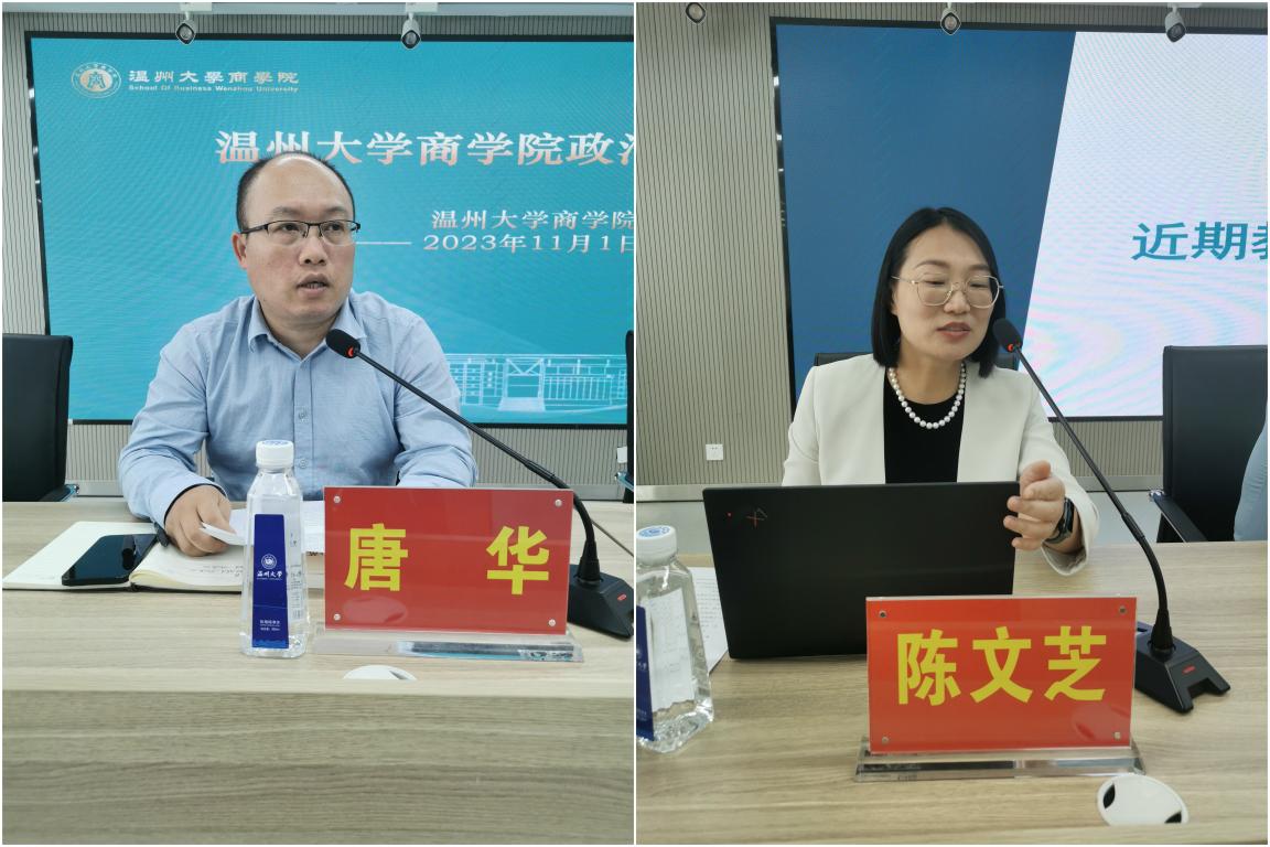 在商院楼A226仲辉商道讲堂举行全院教职工大会暨政治理论学习会,全体教职工参加会议,会议由学院党委书记李密主持。