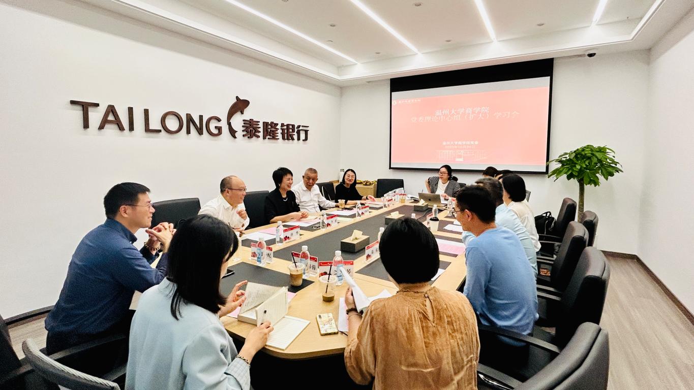 党委于泰隆银行龙湾支行“人才之家”共享会议室召开“第一议题”暨2023-2024学年第一学期第二次理论学习中心组(扩大)学习会。会议由李密书记主持,学院班子成员、党委委员、各教工支部书记、系主任、科室主任、教师代表参会。
