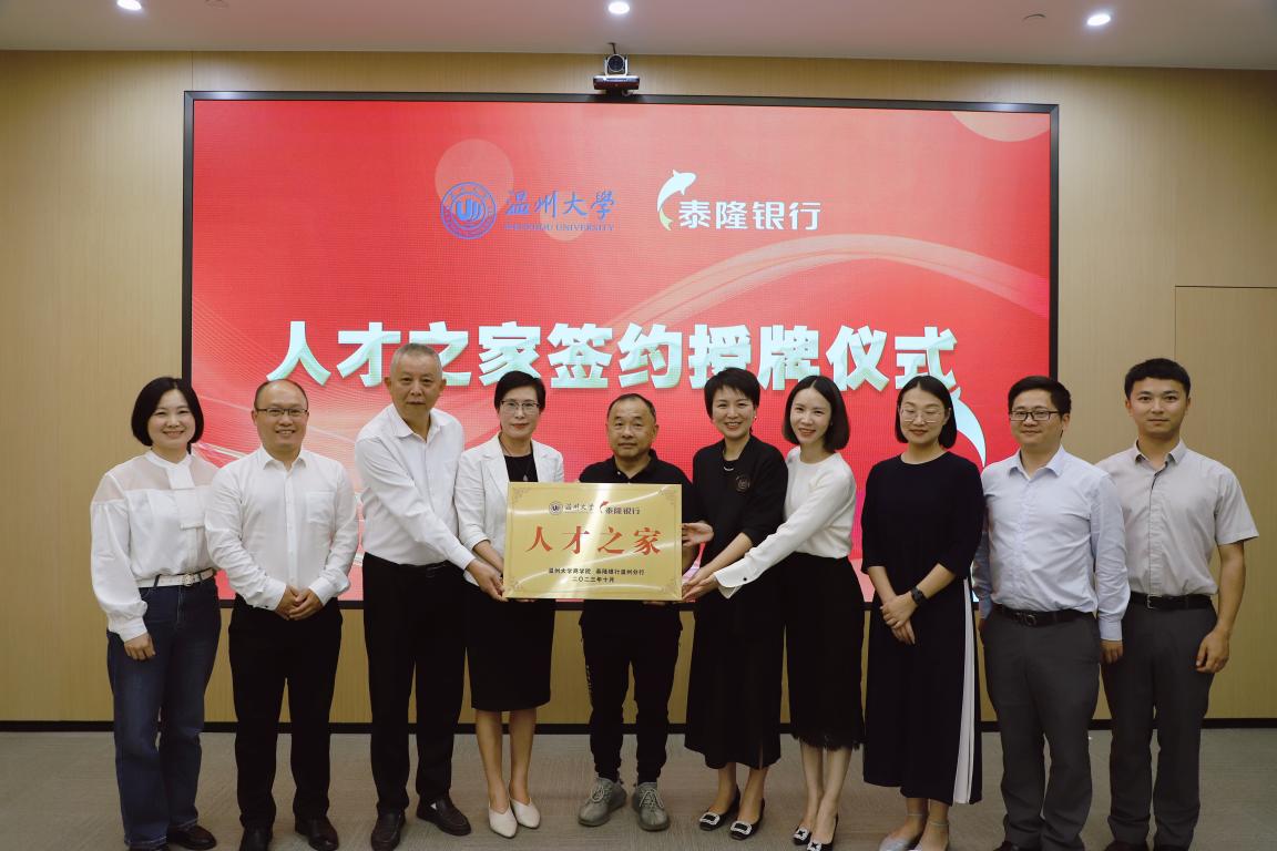 的党建共建单位,此次签约授牌将致力于共同实现“人才服务党建共同体”“人才活动温州新地标”“人才工作展示新窗口”三大建设目标,始终坚持党建引领人才发展的原则。希望在泰隆银行提供的“人才之家”良好环境中,形成长效合作机制,开展各项活动,定期交流,共同探索,把“人才之家”建设为各类商科人才想来、愿来和常来的美好家园。