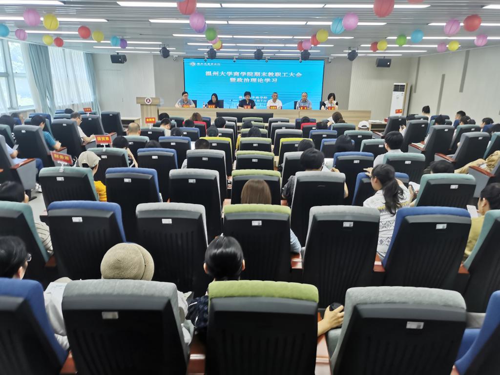 在商院楼A226仲辉商道讲堂举行全院教职工政治理论学习会。全体教职工参加会议,会议由学院党委书记李密主持。