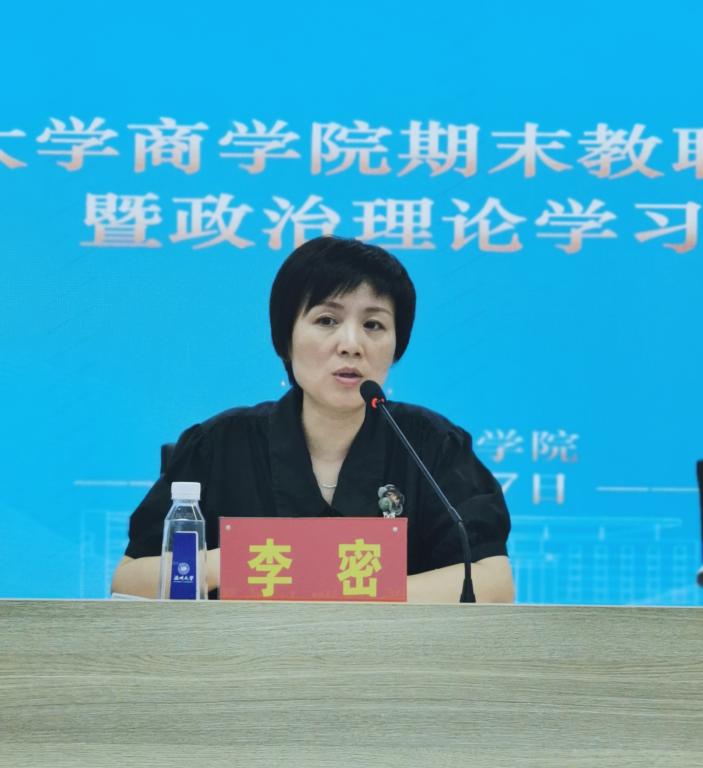 李密书记指出学院全体教职工要从中吸取深刻教训、引以为戒,做好自查自纠,自觉遵守相关规定与纪律,合法合规使用各类经费,不存侥幸心理,不碰纪律红线,不碰法律底线,牢记立德树人初心使命,廉洁从教,营造风清气正的政治生态和育人环境。同时她对组织纪律进行强调,要求大家严格遵守学校规章制度,守牢规矩底线,追求道德高线,自觉加强师德修养。