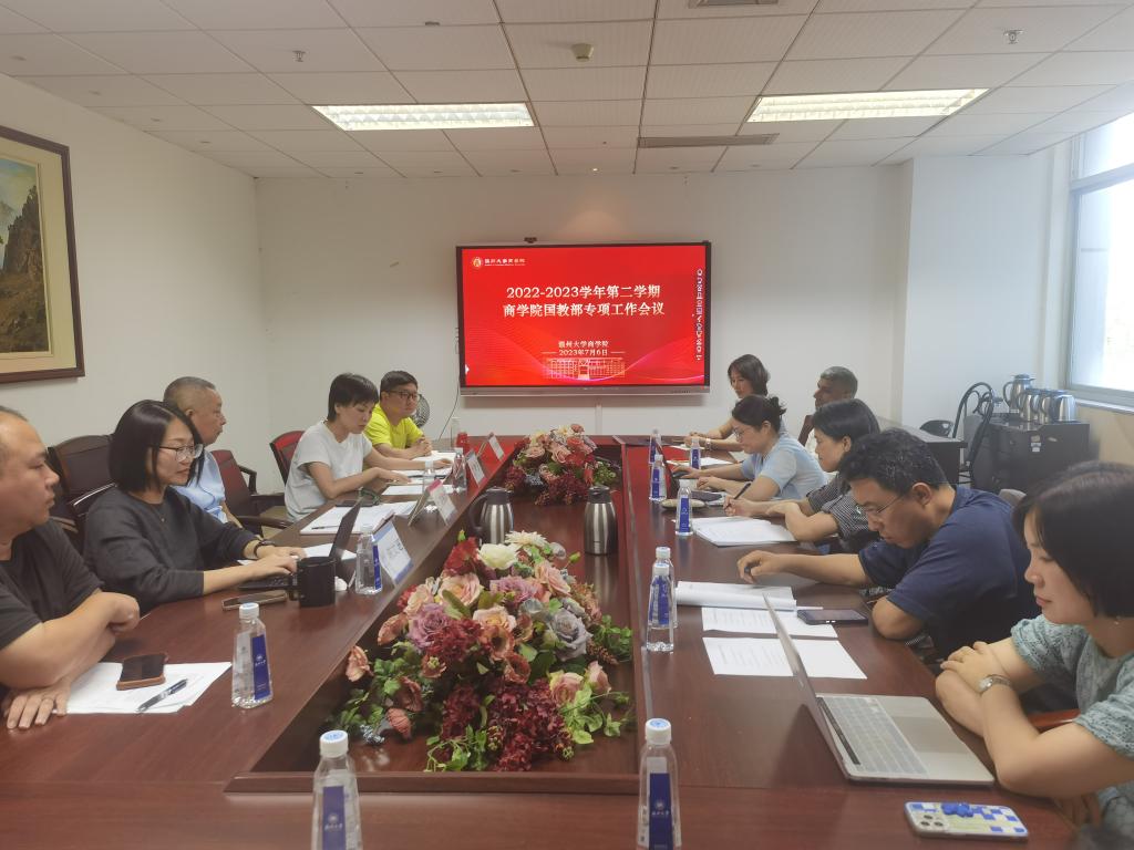 2023年7月6日上午,我院在商学楼A222会议室召开国教部专项工作会议,院长胡振华、党委书记李密、教学副院长陈文芝、跟岗干部方嘉奇老师,以及国教部全体老师出席会议。会议由陈文芝副院长主持。