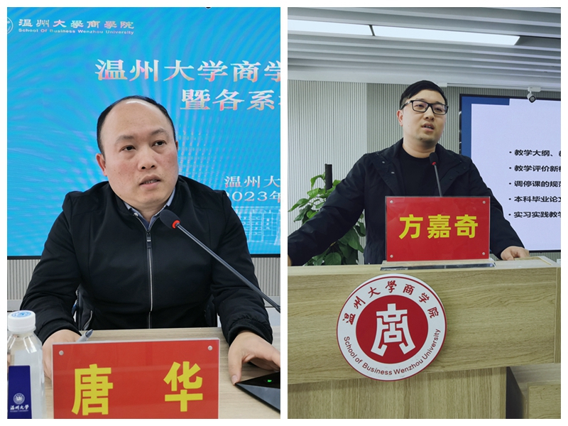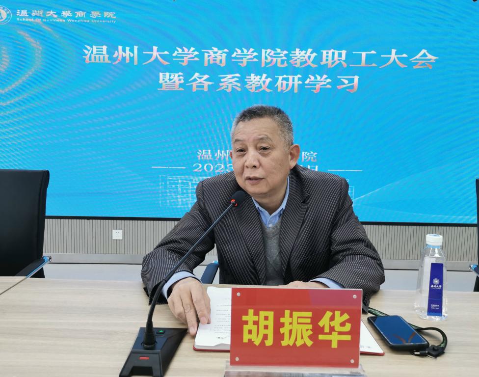胡振华院长宣布了近期学院人事工作变动,对浙江省党建工作样板支部的建设工作、科研工作、研究生工作、MBA硕士点申报和博士点申报工作进行部署。他就教师个人发展作主题讲话,他指出教学求生存、科研求发展,每位老师都要做好自身的发展规划与师德师风建设。