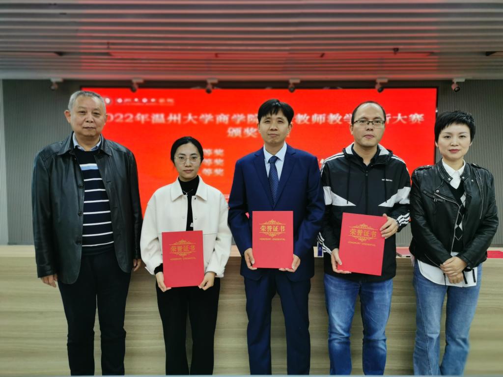 院级教师教学创新大赛颁奖仪式,对金必简、姚鹏、陈明灼、王芳芳、姜亮等五位获奖的老师进行表彰。
