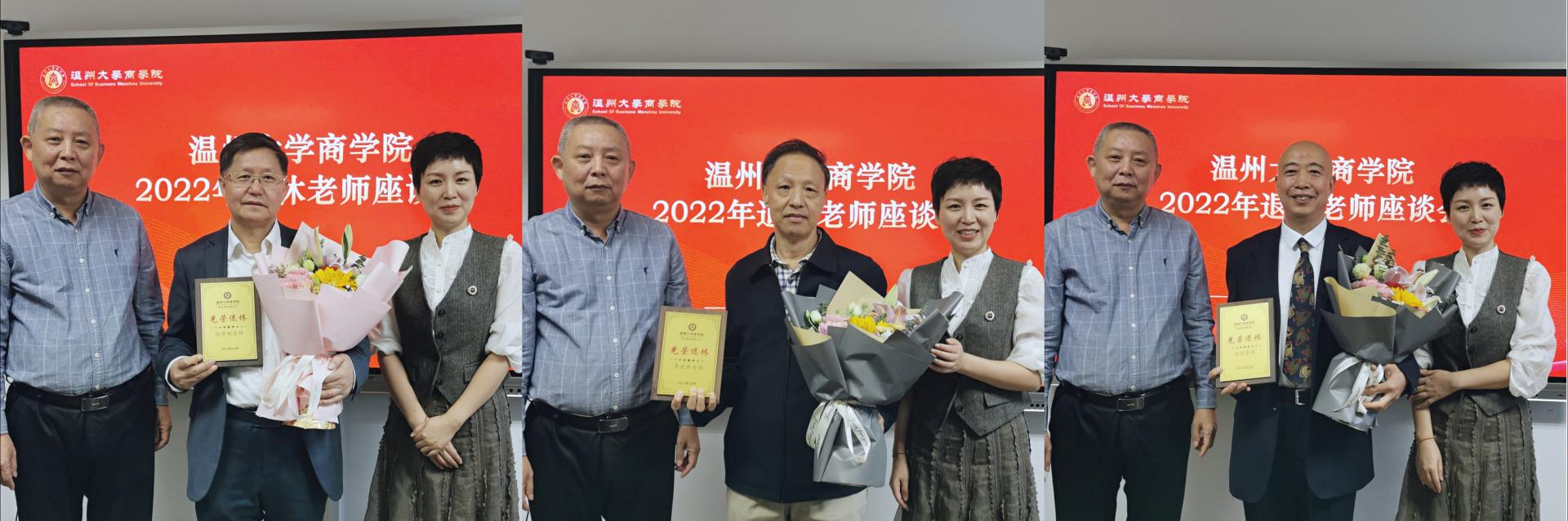 的工作经历,三位教师在学院干事创业之初的困难时刻都做出过贡献,学院的今天和未来都与他们打下的基础密不可分,他强调要牢记老教师历史上的贡献。他祝福三位老教师在人生新的篇章快乐、健康、好运。