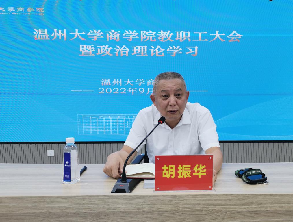 在商院楼A226仲辉商道讲堂举行全体教职工政治理论学习,特邀赵敏校长作省第十五次党代会精神专题宣讲。会议由学院党委书记李密主持。
