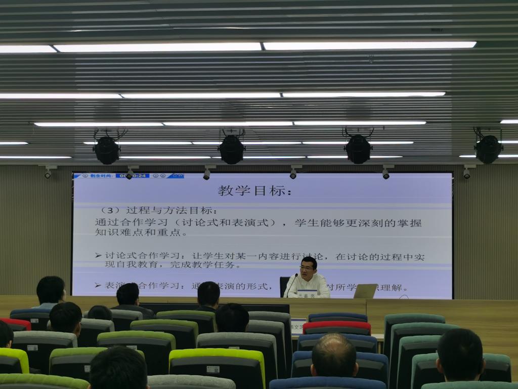 三寸讲台育桃李,大赛现场展英姿。各位参赛老师准备充分,教态自然,语言表达清晰准确,教学过程设计合理,在短短的15分钟时间内全面展示了我院教师的教学创新成果,给现场观众呈现出充满激情和活力的魅力课堂,获得了各位专家的一致好评。经过激烈角逐,金必简老师获得特等奖,姚鹏和陈明灼老师获得一等奖,王芳芳和姜亮老师获得二等奖。