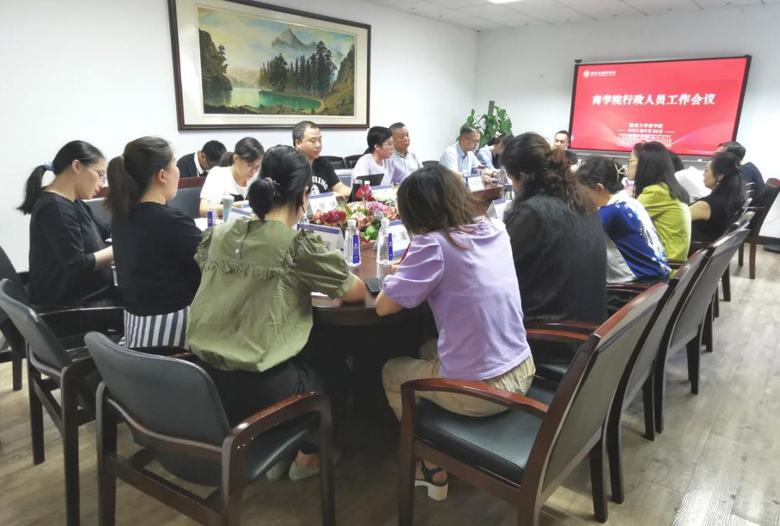 在北校区信息楼A222会议室举行行政人员工作会议,学院全体行政工作人员参会。会议由学院党委书记郑彩莲主持。