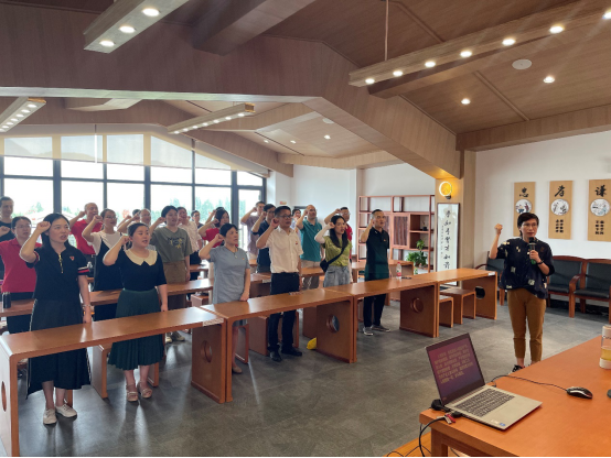 此次主题党日活动在曹村东岙文化礼堂开展,全体党员同志在学院党委书记郑彩莲领读下重温入党誓词。“我志愿加入中国共产党,……,永不叛党”。全体党员面对党旗,重温入党誓词。坚定的承诺,字字千钧,让每一位党员的心灵再次受到震撼和洗礼。