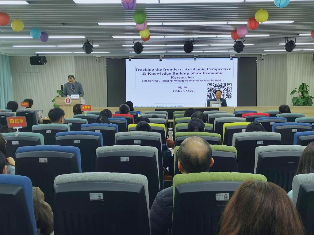 随后,会议举行了商道讲坛第35期,邀请浙江大学经济学院赵伟教授作题为《追踪学术前沿:经济学研究者的学术视野与知识构建》的专题讲座。