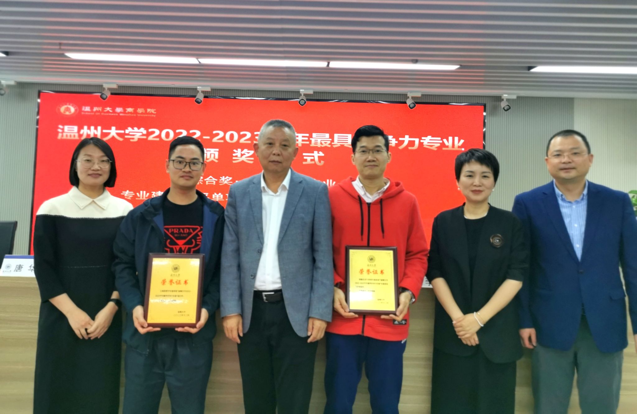 2022-2023学年最具竞争力专业颁奖仪式,对获得综合奖的工商管理系和专业建设水平单项奖的国际经济与贸易系进行表彰。