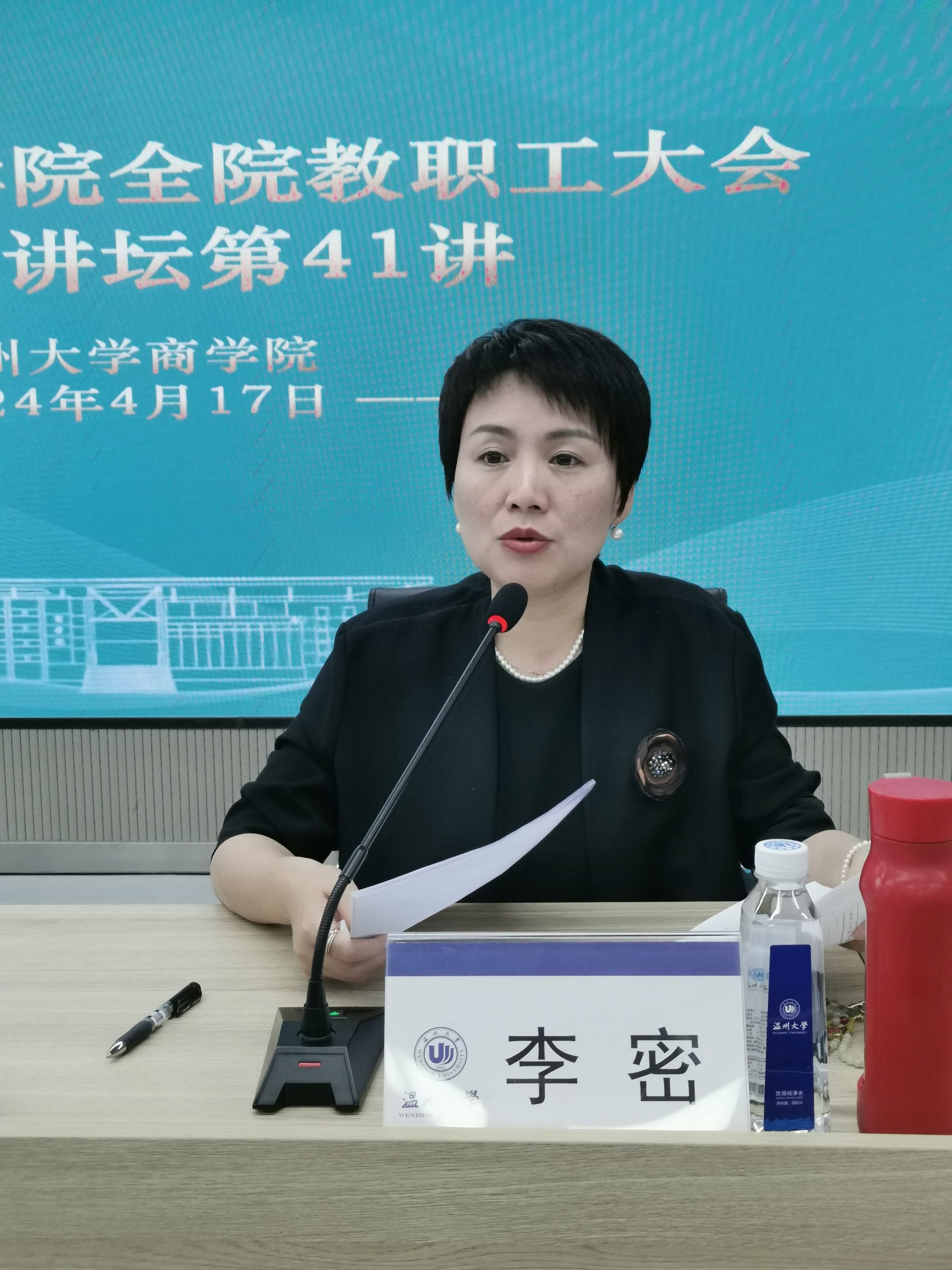 在商院楼A226仲辉商道讲堂举行全院教职工大会暨党纪学习教育动员仪式,会议由学院党委书记李密主持,学院全体教职工参加。