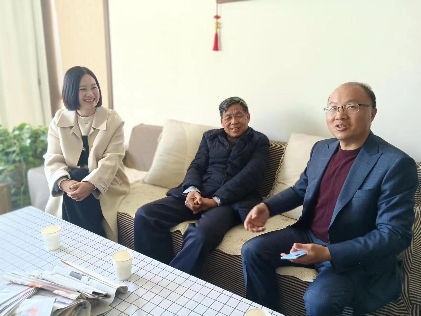 跟岗干部王露与工会主席周建华一行看望了退休教师肖文旺、李健,周主席把最近学院发展情况向退休老教师做了汇报,并提前祝福他们新年快乐,老同志非常感谢学院领导的慰问,祝福学院发展越来越好。