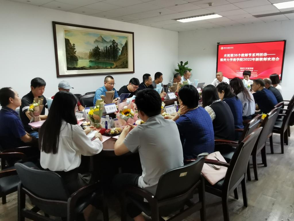 在第38个教师节即将到来之际隆重举行2022年新教师欢迎会,学院全体领导班子、新教师与其结对导师、学院办公室与工会工作人员参加会议,会议由院党委书记李密主持。